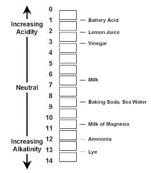 This is a measure of how acidic or alkaline a substance is. The initials pH stand for “Potential of Hydrogen.” Acids have pH values under 7, and alkalis have pH values over 7. If a substance has a pH value of 7, it is neutral-neither acidic or alkaline.