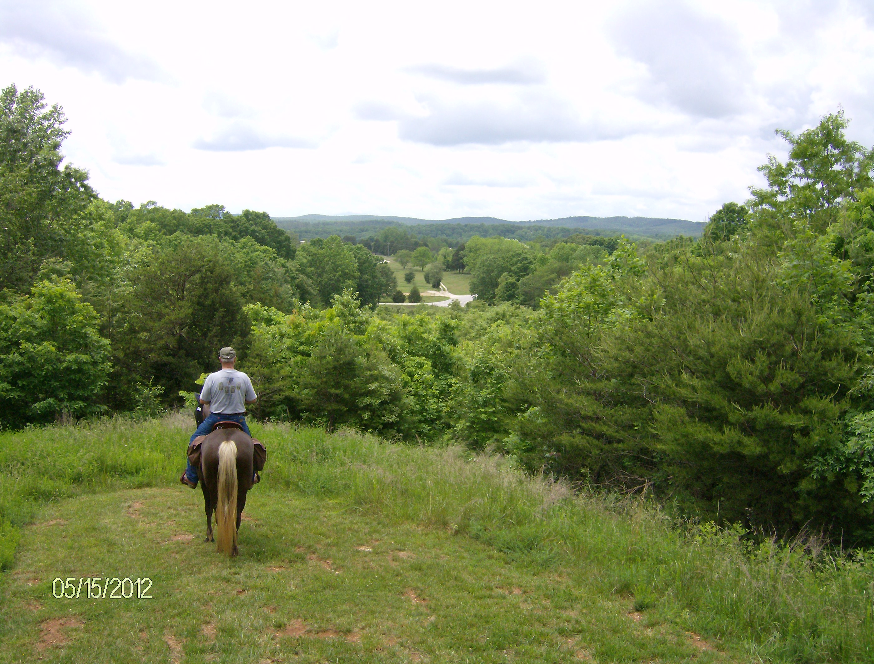 We rode back out and did another six or eight miles in the afternoon. I am guessing at the mileage by breaks but know we did 14.54 miles on Wednesday according to the GPS. Stewart and I are not speed demons and we enjoy just ambling along and enjoying the beauty and seeing the sights and talking a bit. We saw numerous deer, about a thousand squirrels, tracks from all kinds of wildlife. We did not see any signs of bear. But at one point the horses tensed up and were watching to the left and we did not see anything. But there was a loud crash in the woods that sounded like a tree falling. We concluded that it was sasquatch and had a light hearted discussion of, if we saw him should we shoot him. After a discussion of laws and regulations and possible legal actions, we decided that if we could drag a dead sasquatch out of the woods it would be worth it. That is just the kind of silly fun we have when riding. We might retire and become professional sasquatch hunters. We can not do any worse than the existing sasquatch hunters. No one has found one dead or alive yet.