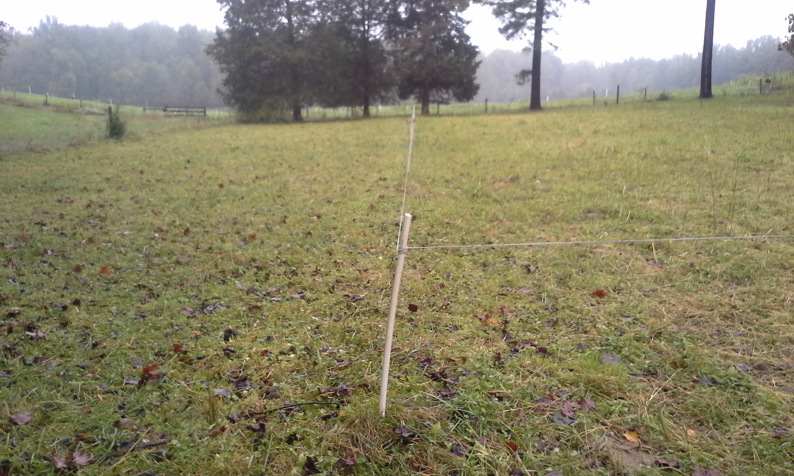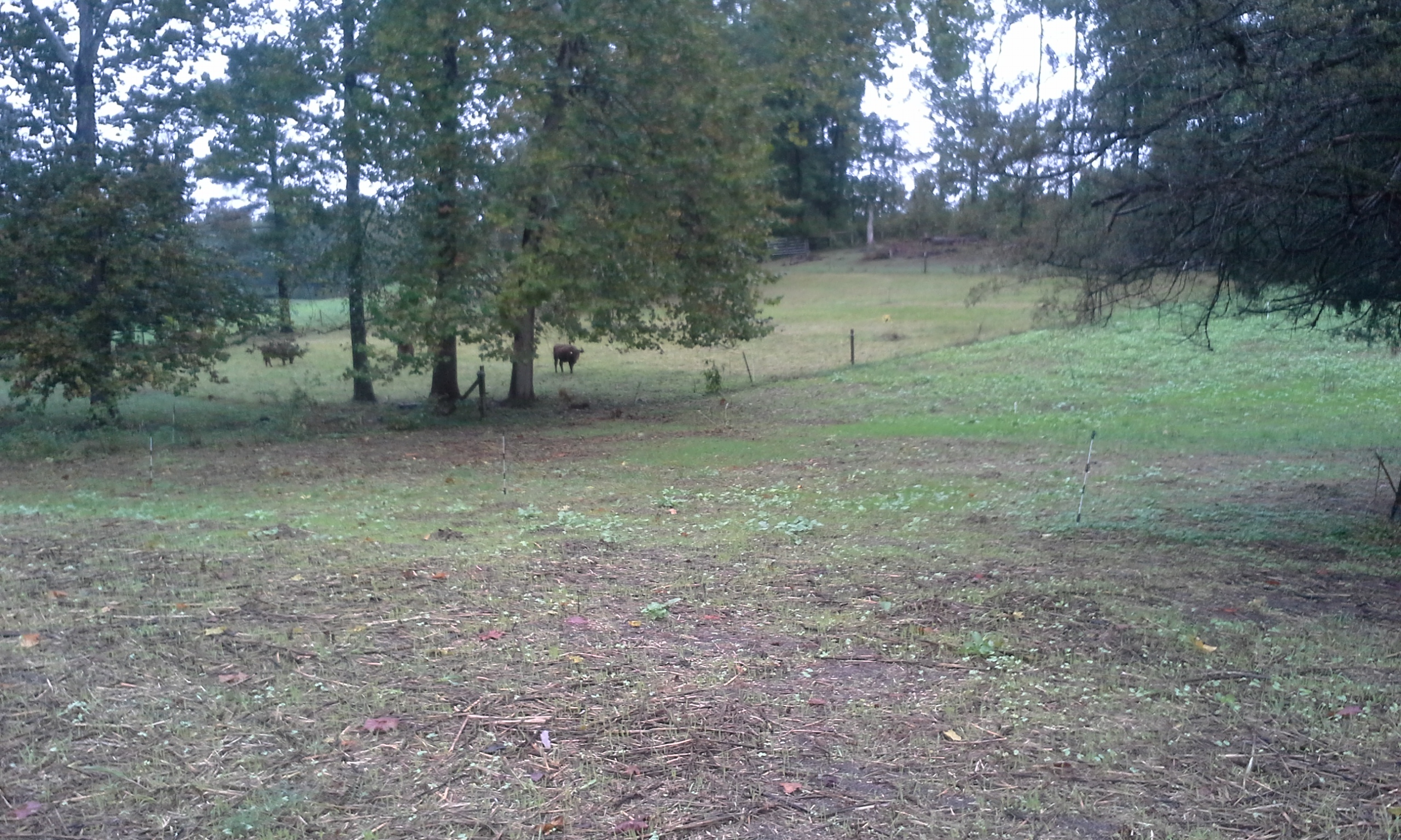 below are two of the three strips I sowed seed on this morning…these are strip 3 and 4 of the corner lot…six heifers have been grazing them this week…I moved the heifers to Ell 1 and broadcast seed…It was too wet to get the tractor on the lots and it was still raining…