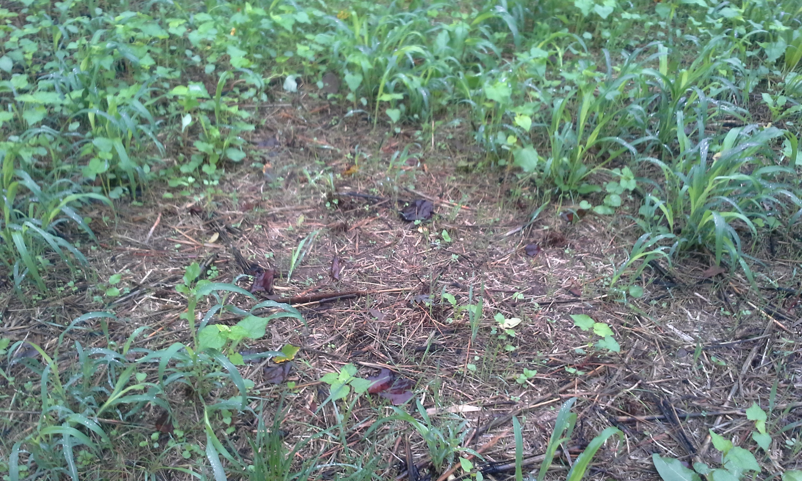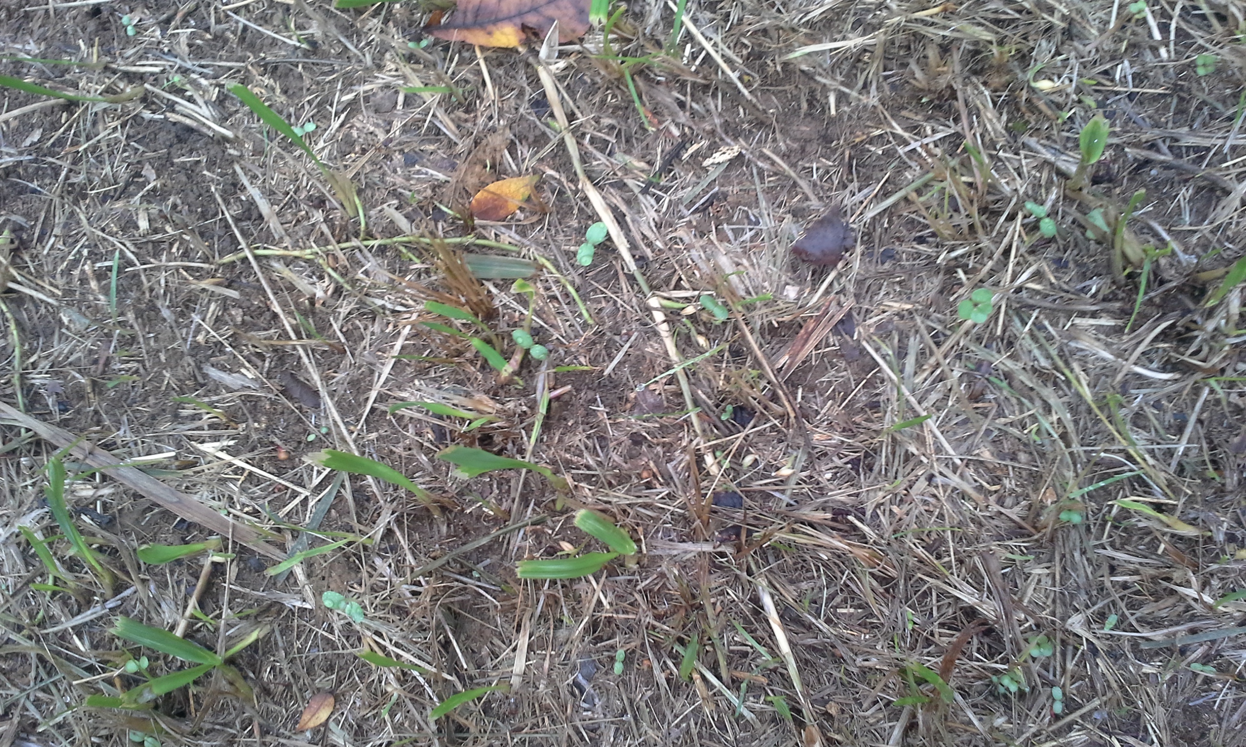 here is a shot attempting to show the new seedlings in corner strip 2….too small to tell what they are yet..