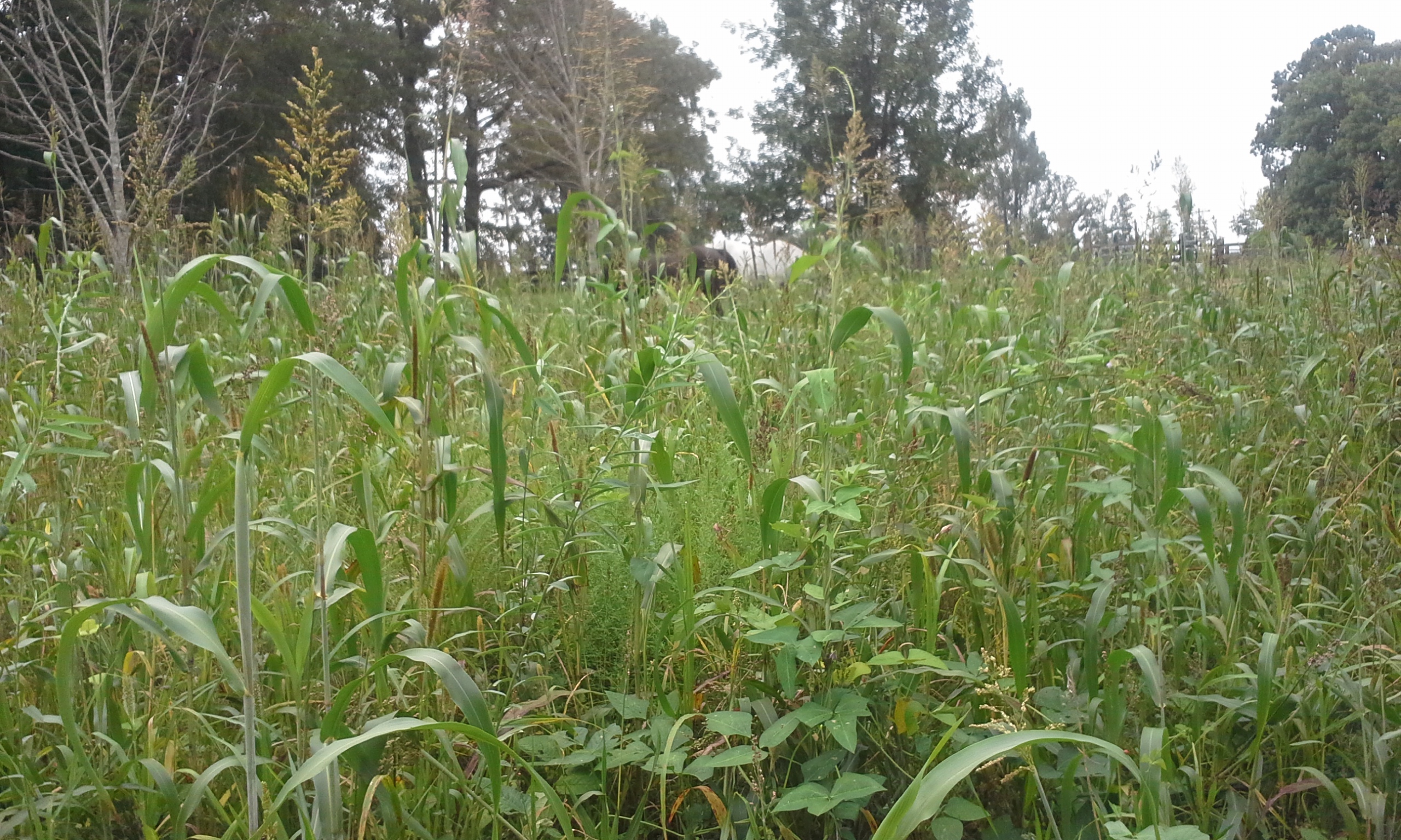 - I broadcast some type of seasonally appropriate cover crop on every paddock after most every grazing and bushog it.