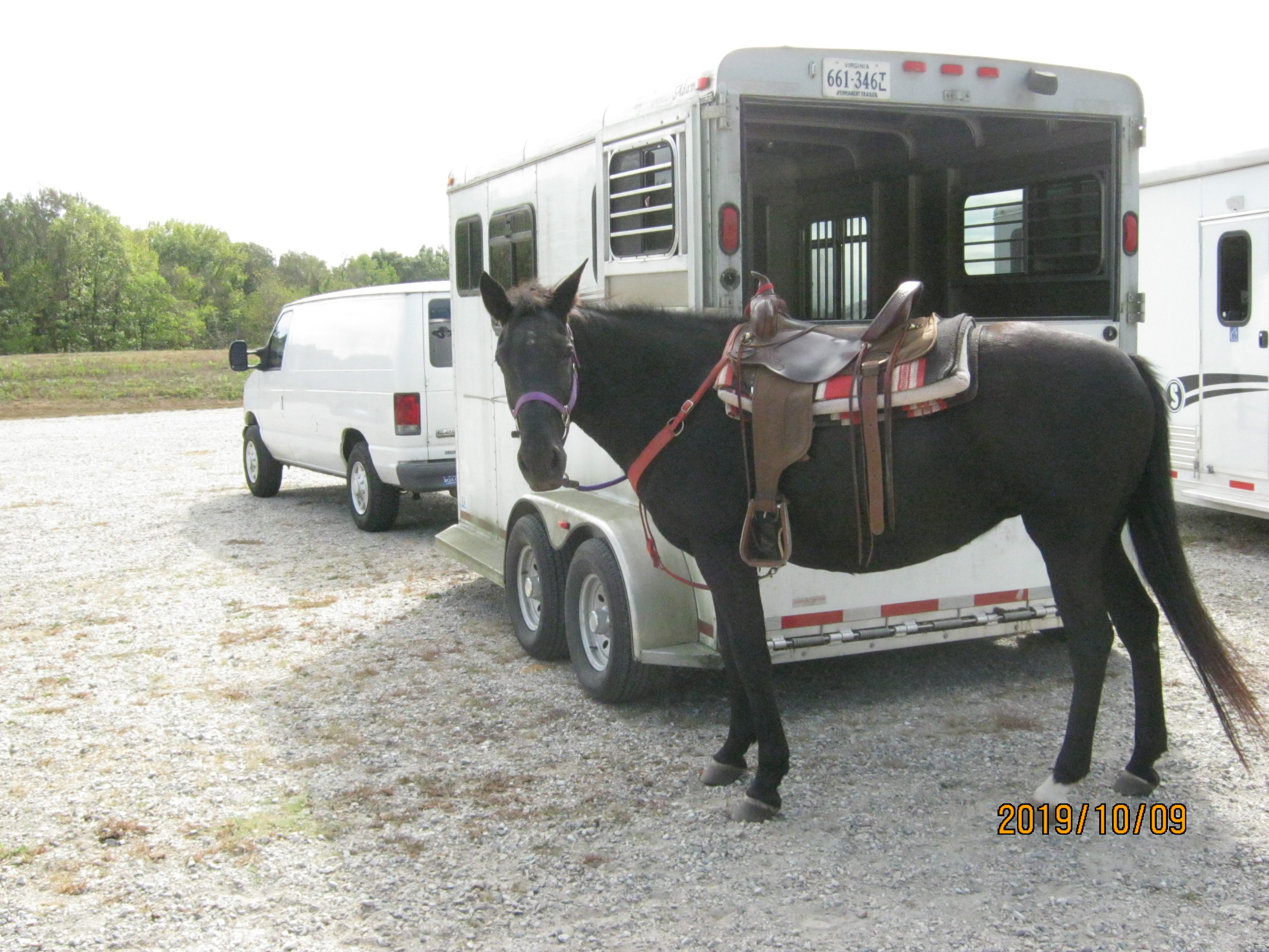 Several years ago Stewart and his wife moved to Buchannan Va. We had become pretty good friends and we kept in touch but we seldom had a chance to ride together…While he had retired from the Hanover Sheriff’s department he went to work part time in Law enforcement and courts in Roanoke. So he worked some odd hours. I continued to lounge around at the Soil and Water District. Then while he was up there, is when Marie’s health was just beginning to fail her big time and I had to stick a little closer to home so me going up there to ride with him was out. Stewart made several trips down this way so that we could ride…The last time we rode together was a short parade in June of 2017 in the town of Mineral….I don’t even remember the cause of the parade but recall that the Best of America by Horseback crew was there. I rode Palladin Perkins and Stewart brought Dancehall Dixie. Many of the riders who frequent the Poor Peoples Riding Club were there. It was a short fun ride…