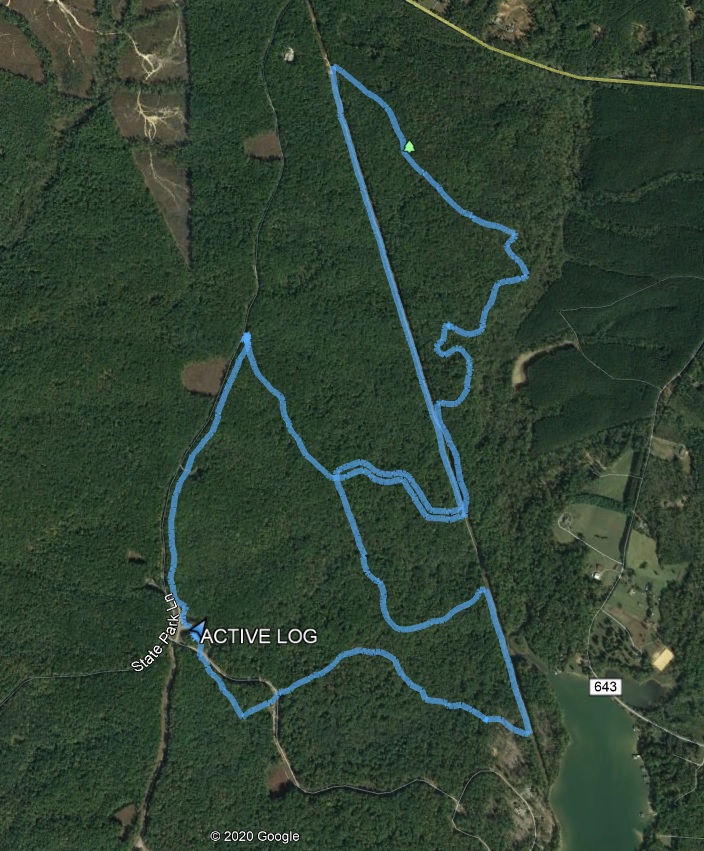 Below is a gps of the trails we rode….We had a grand time…the long straight line is along the big power line….it has several steep ups and downs the ride through the woods is beautiful and this time of year you can see everything in the open hardwood forest…there were two small stream crossings and Condi stopped to get a drink at both of them…